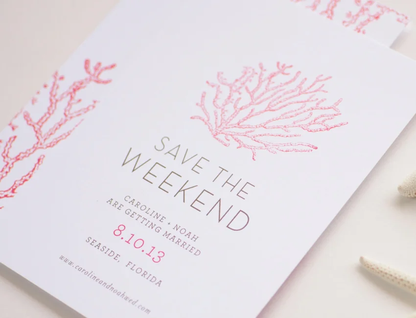 Save the Date cards are printed on 120#, 20% cotton cardstock in your choice of white or ivory.